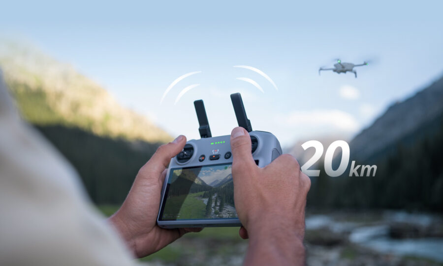 Дрон оснащен функцией передачи видео DJI O4. Наслаждайтесь плавными прямыми трансляциями с разрешением 1080p и частотой 60 кадров в секунду на расстоянии до 20 км.[3]